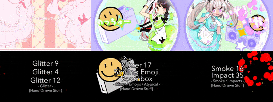 「Hand Drawn Stuff」から「Glitter」や「Smoke」「Emoji」などの素材が使用されています。