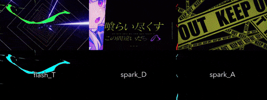 「flash_T」「spark_D」「spark_A」などのシャープな稲妻系素材が使用されています。